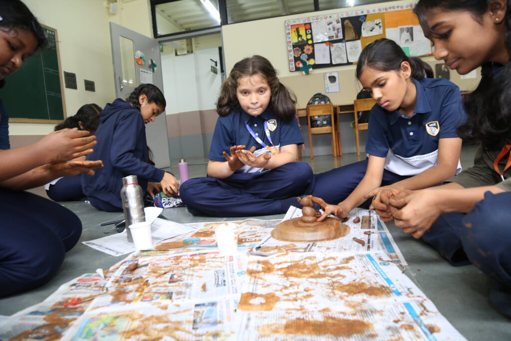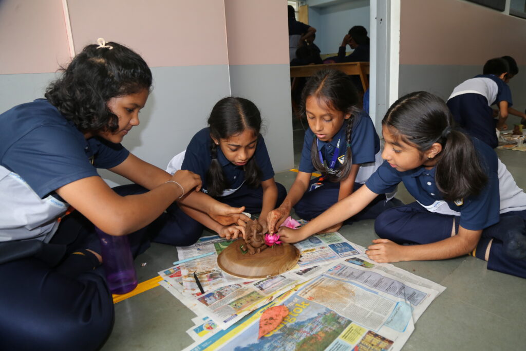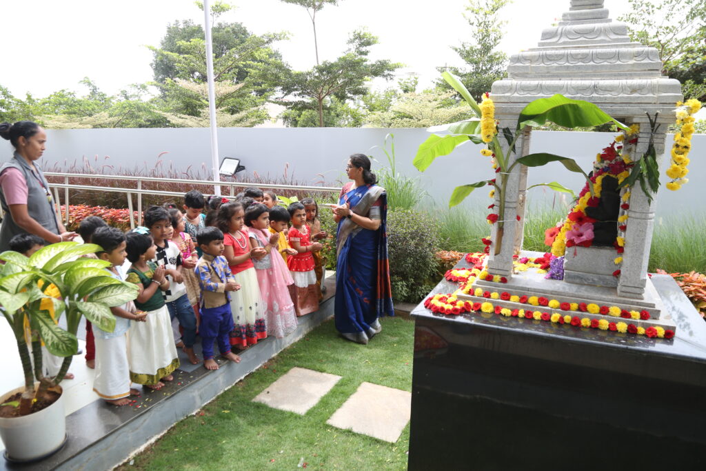 Dressed in graceful ethnic attire, the children offered flowers and prayers to Lord Ganesha filling the atmosphere with faith and festivity. Sweet modaks as prasadam added to the delight, while little ones shared how they celebrate the festival at their homes. The divinity of the day was enhanced by students from grade 1 – 8 when they prepared more than 100 Ganesha idols in campus using clay.