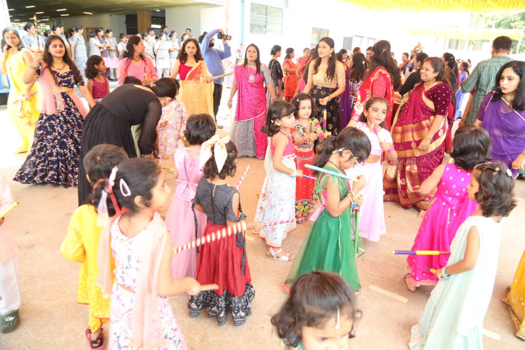 The highlight of the day was the DJ, whose lively music had parents and teachers dancing their hearts out. For two hours, the school echoed with laughter, music, and rhythmic dandiya beats, creating a memorable experience of joy, togetherness, and celebration.
